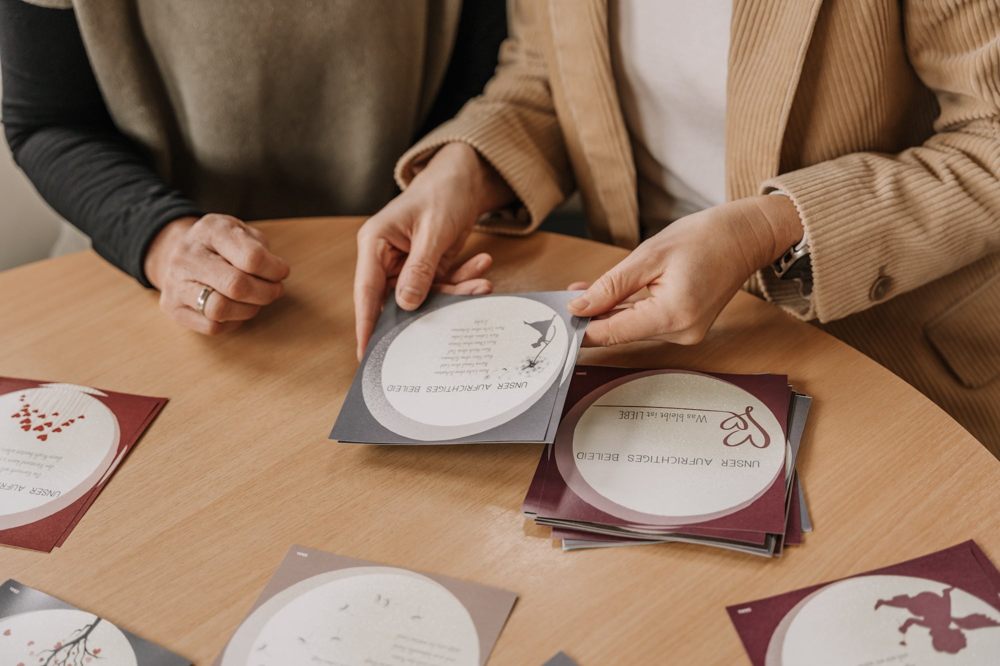 Wir, Silvia und Martina, gestalten für Sie einfühlsame Trauerkarten für den Fachhandel – mit Feingefühl und Haltung. Unsere Motive stehen für stille Würde und echtes Mitgefühl.