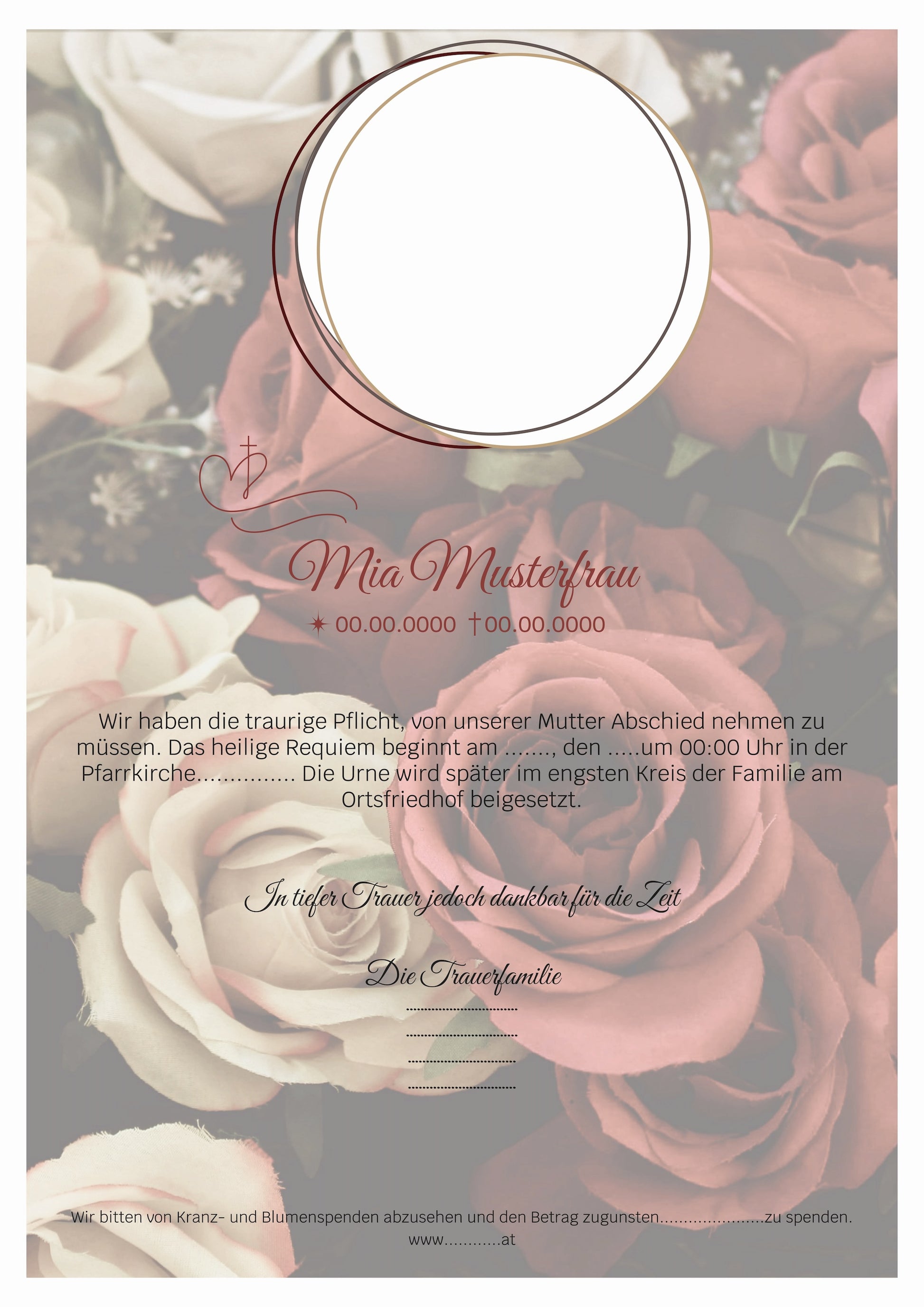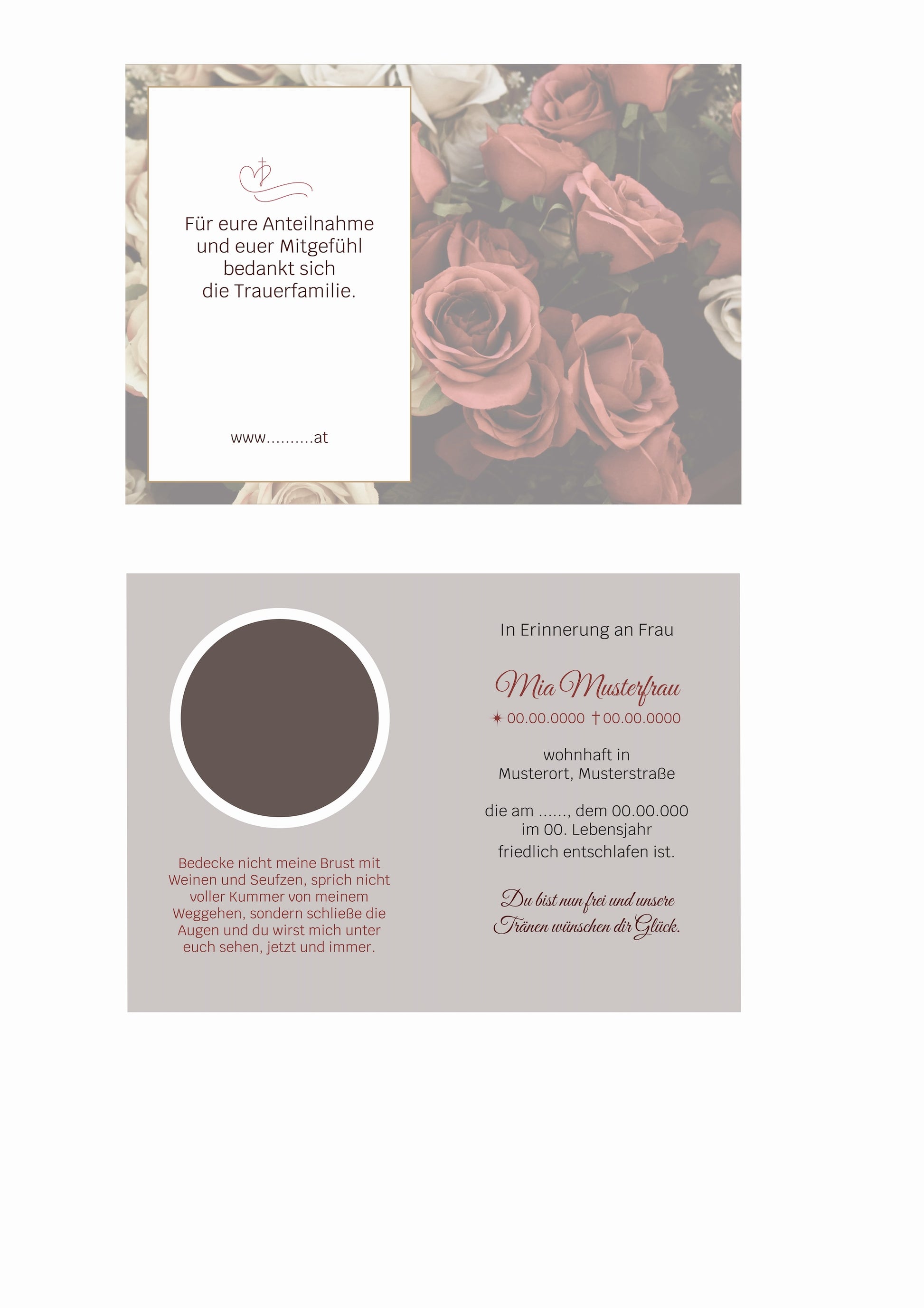 Unsere Designs bieten einen frischen gestalterischen Zugang, klare Struktur und sofortige Einsetzbarkeit – ganz ohne Grafikprogramm. Das Designpaket wird als bearbeitbare PDF-Vorlage bereitgestellt und enthält eine A4-Parte, eine kleinere Parte zum Falten sowie ein Erinnerungsbild. Name und Foto lassen sich individuell anpassen, sodass Bestatter das Motiv beliebig oft verwenden können. Mit Feingefühl gestaltet und professionell aufbereitet, ermöglicht die Vorlage eine würdevolle, flexible und zeitsparende Gestaltung von Trauerdrucksorten. Die Datei wird nach dem Erwerb digital und bequem zur Verfügung gestellt – bereit für stilvolle Abschiede mit persönlicher Note.