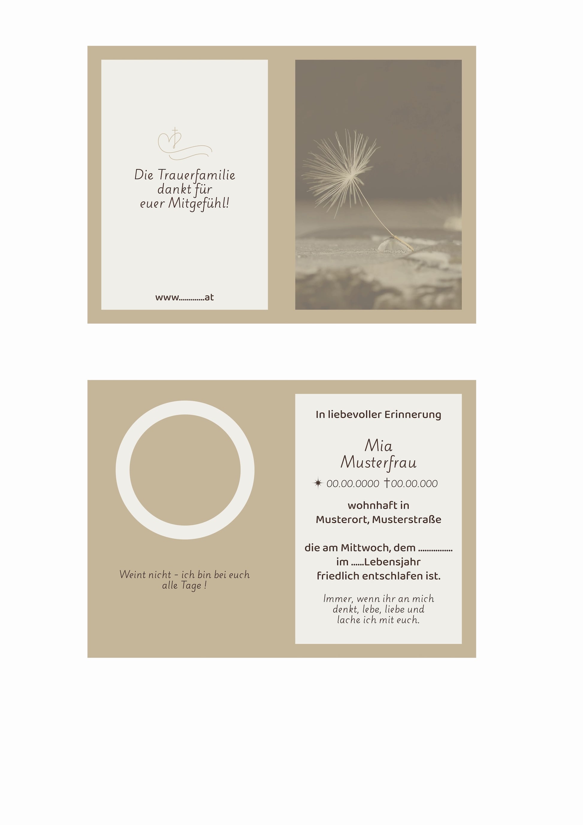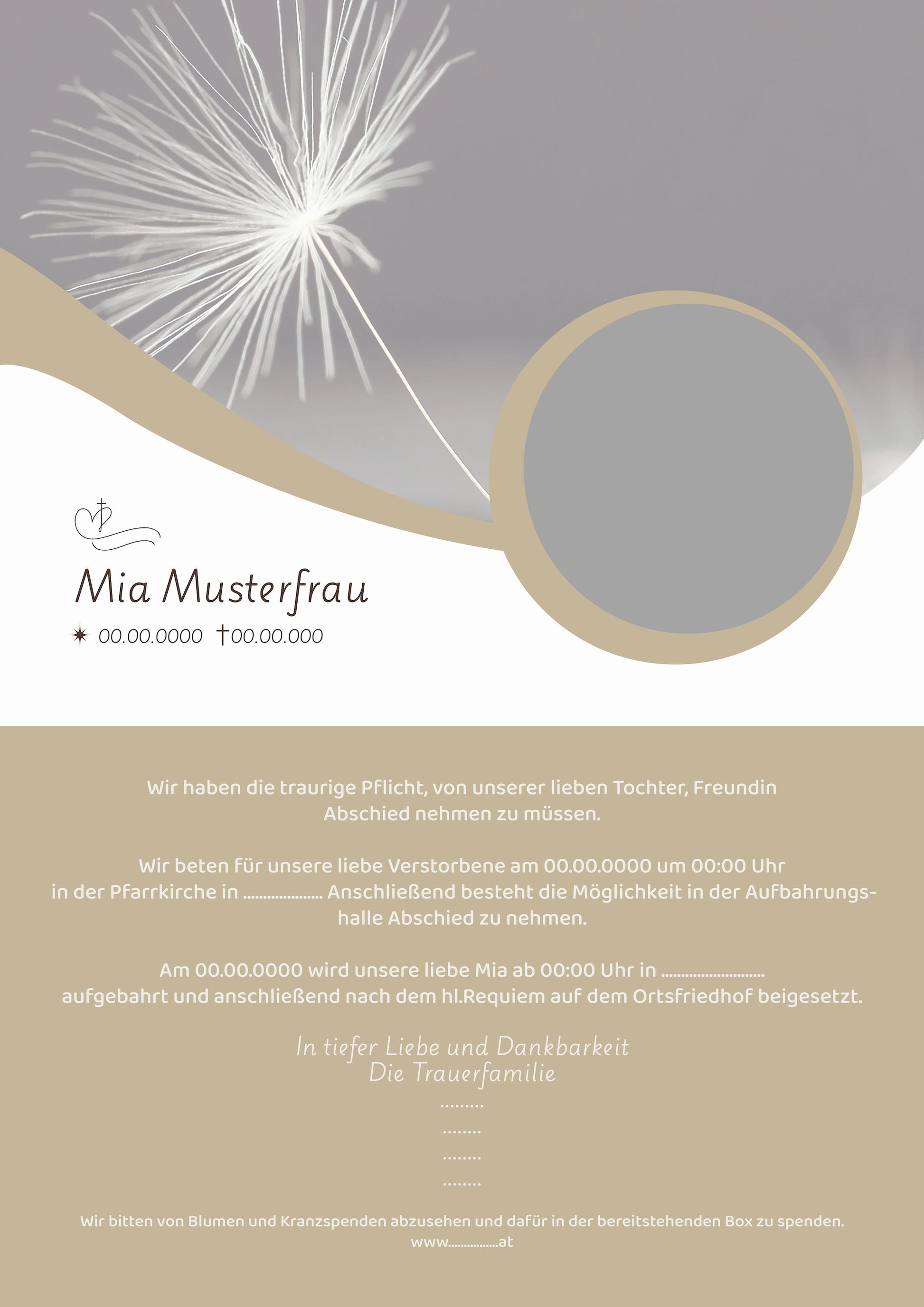 Unsere Designs bieten einen frischen gestalterischen Zugang, klare Struktur und sofortige Einsetzbarkeit – ganz ohne Grafikprogramm. Das Designpaket wird als bearbeitbare PDF-Vorlage bereitgestellt und enthält eine A4-Parte, eine kleinere Parte zum Falten sowie ein Erinnerungsbild. Name und Foto lassen sich individuell anpassen, sodass Bestatter das Motiv beliebig oft verwenden können. Mit Feingefühl gestaltet und professionell aufbereitet, ermöglicht die Vorlage eine würdevolle, flexible und zeitsparende Gestaltung von Trauerdrucksorten. Die Datei wird nach dem Erwerb digital und bequem zur Verfügung gestellt – bereit für stilvolle Abschiede mit persönlicher Note.